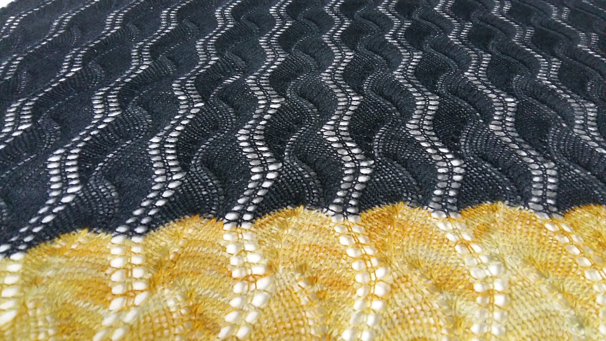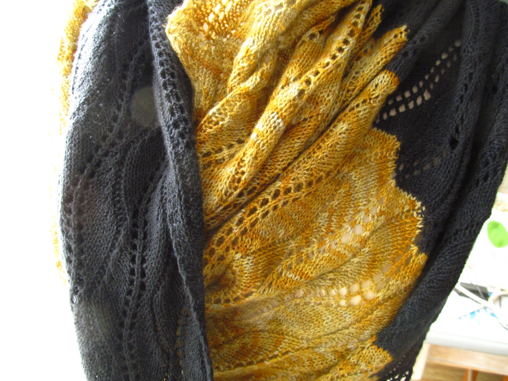 Of… je kunt de Chart breien zoals hij is. En dan nog een paar keer en dan alle lapjes aan elkaar zetten tot een grote shawl ontstaat.