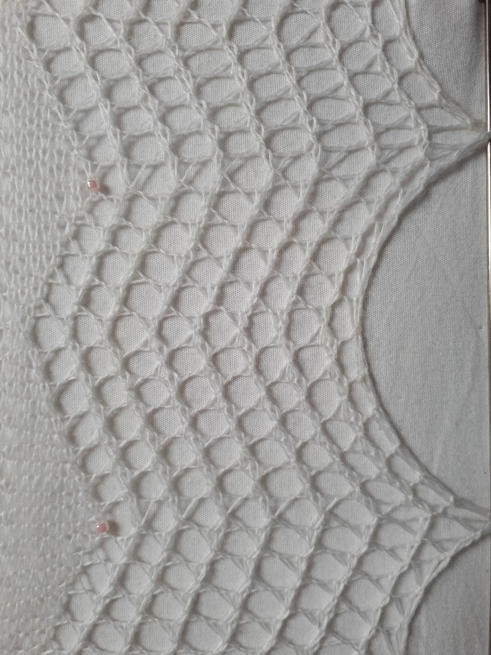 Notions: Crochethook 0,75mm, ~80 beads 8/0 in pink, Blocking kit, T-pins, detergent, towel.