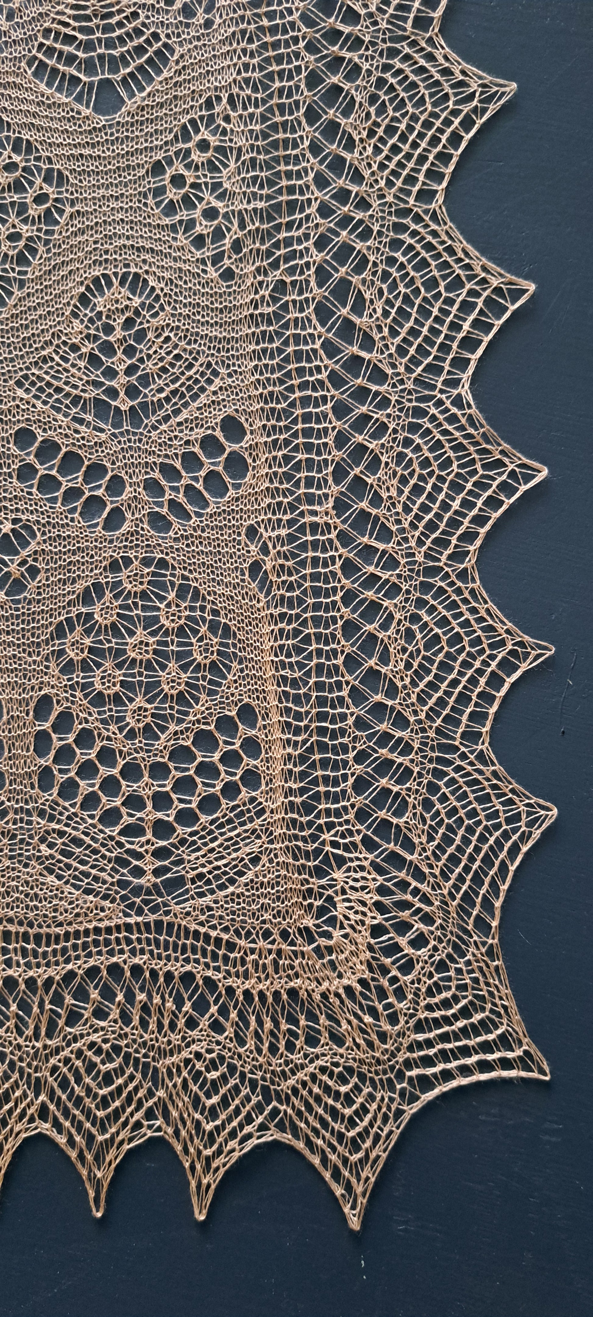 Also: Tapestry needle to weave in ends, mild detergent for washing, blocking kit and T pins for blocking. Fine needle for inserting a Life Line and a contrasting colour yarn. Round safety pins to rescue stitches and a spare needle to hold stitches while working on the second border.
