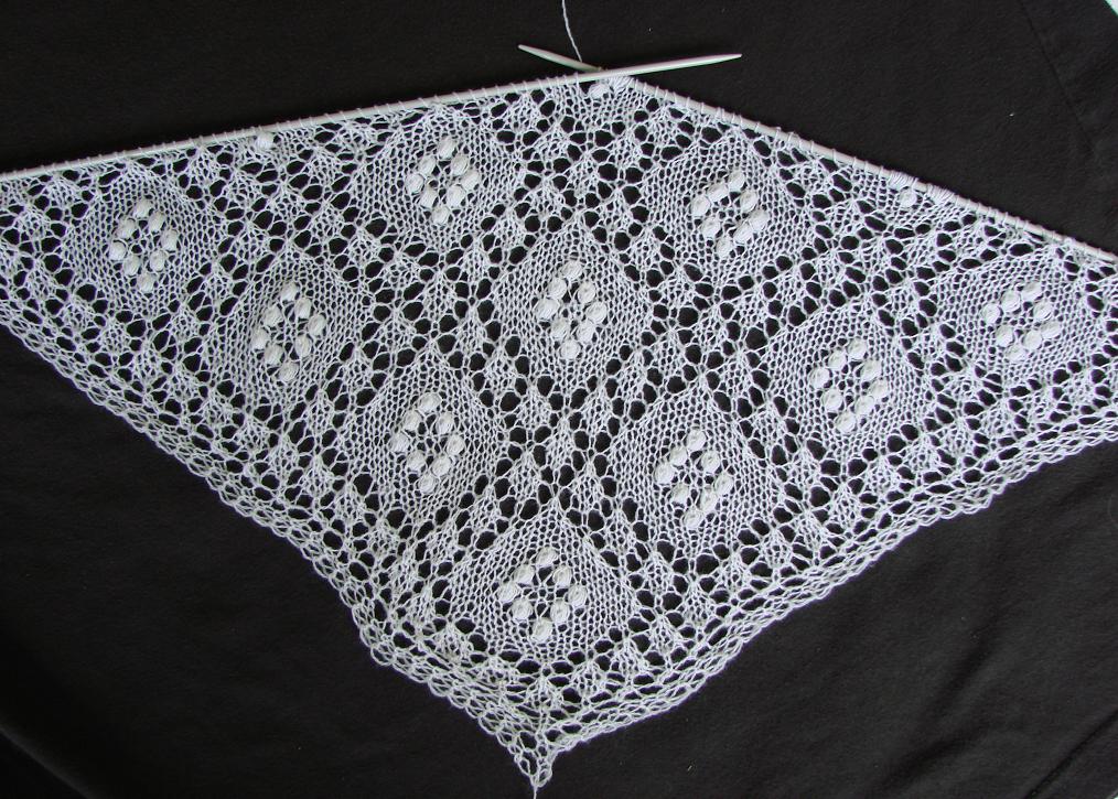 Deze shawl wordt onregelmatig breder door meerderingen.