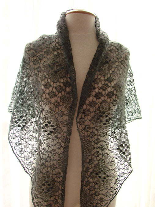 Er zitten 360 nupps in de licht groene shawl.