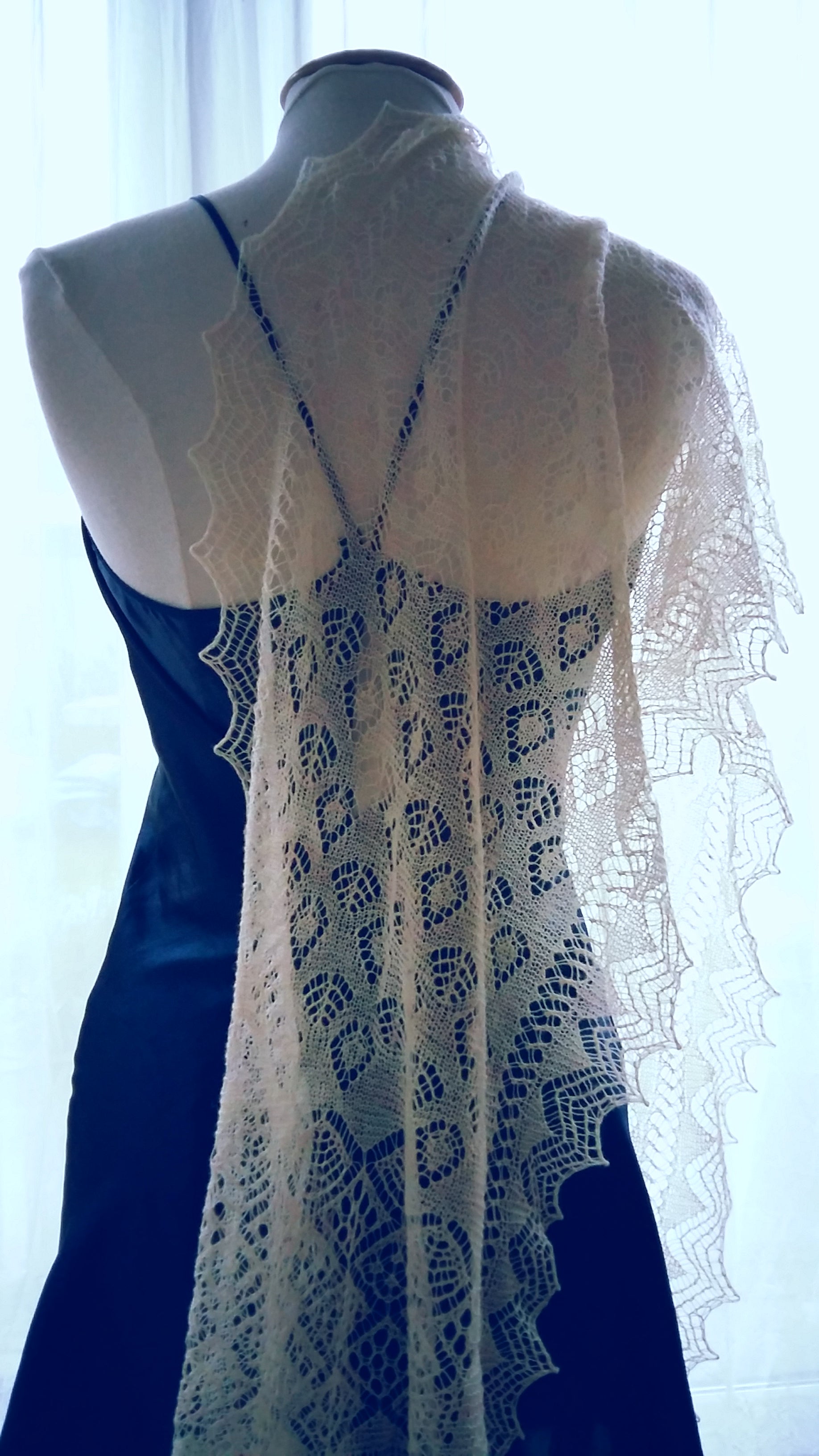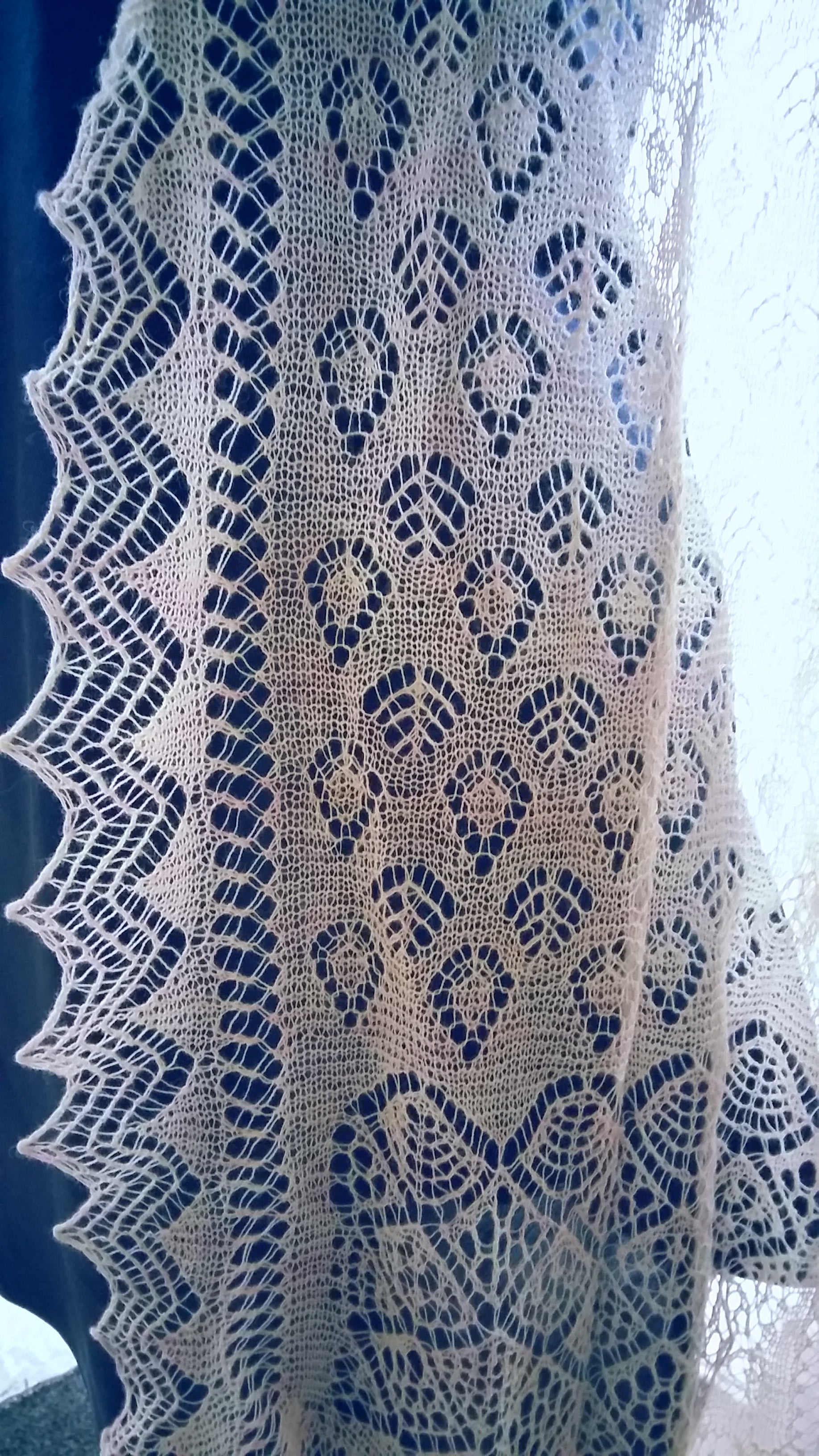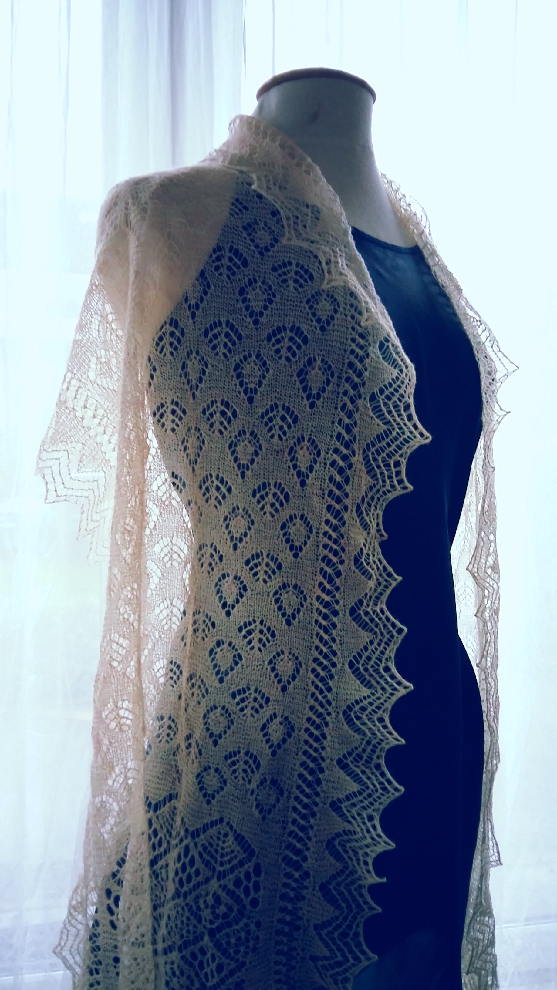 Wanneer je dikker garen gebruikt dan de Sheherazade van The Gossamer Web, dan heb je meer garen nodig. De shawl wordt dan ook groter en breder.