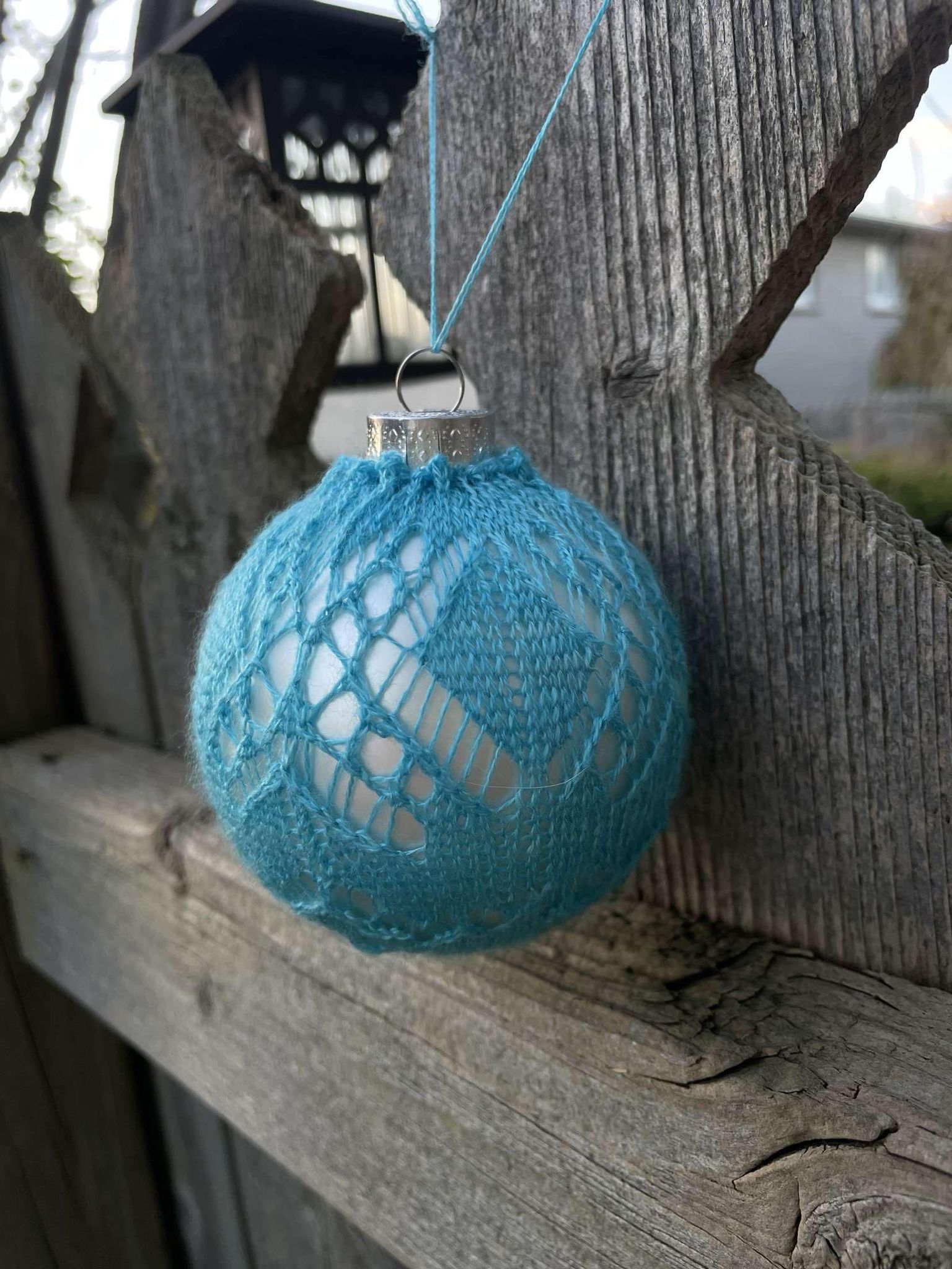 Pink bauble is knit with 3gr o the Mette Mehlsen yarn, knit by me.