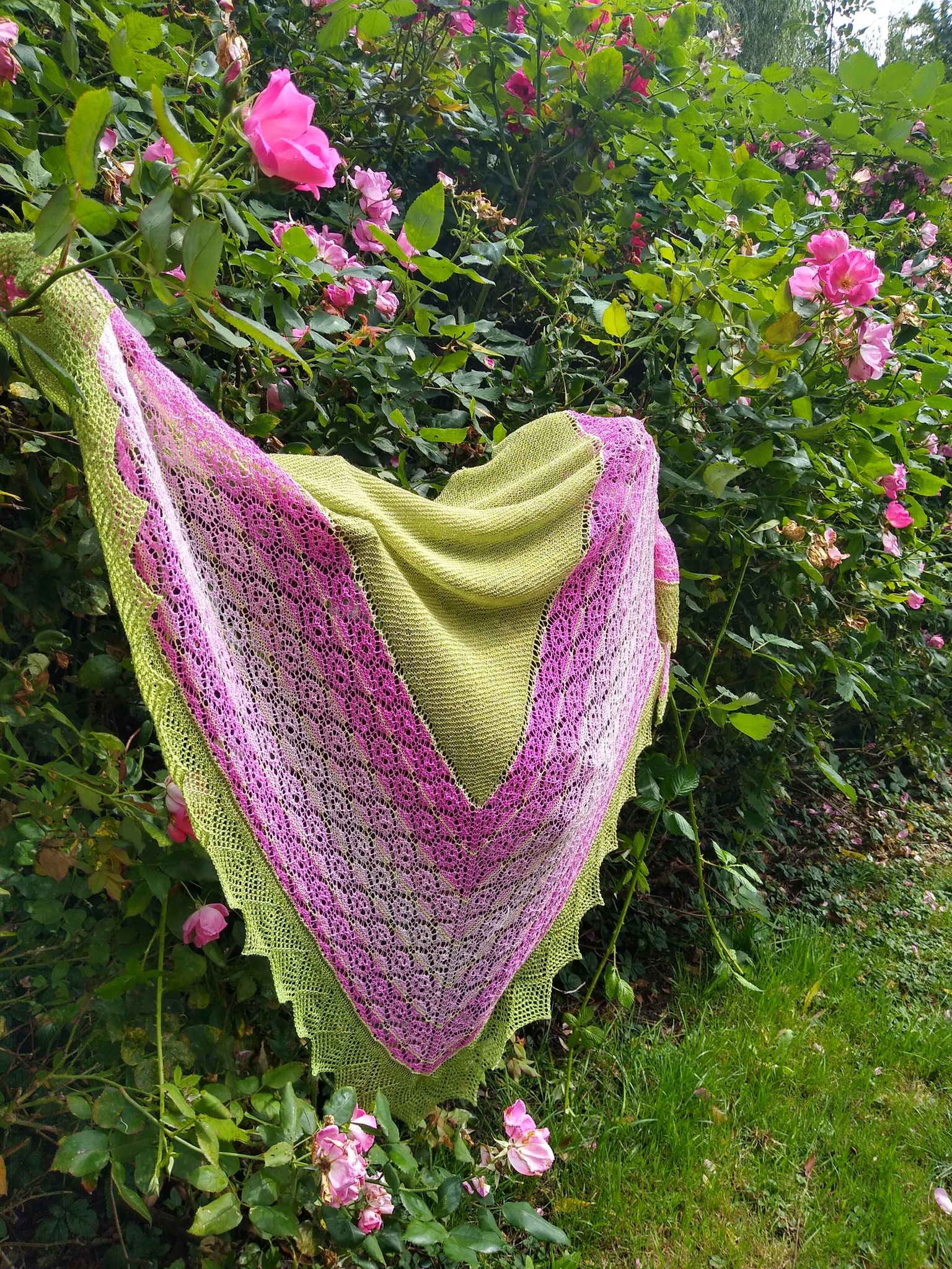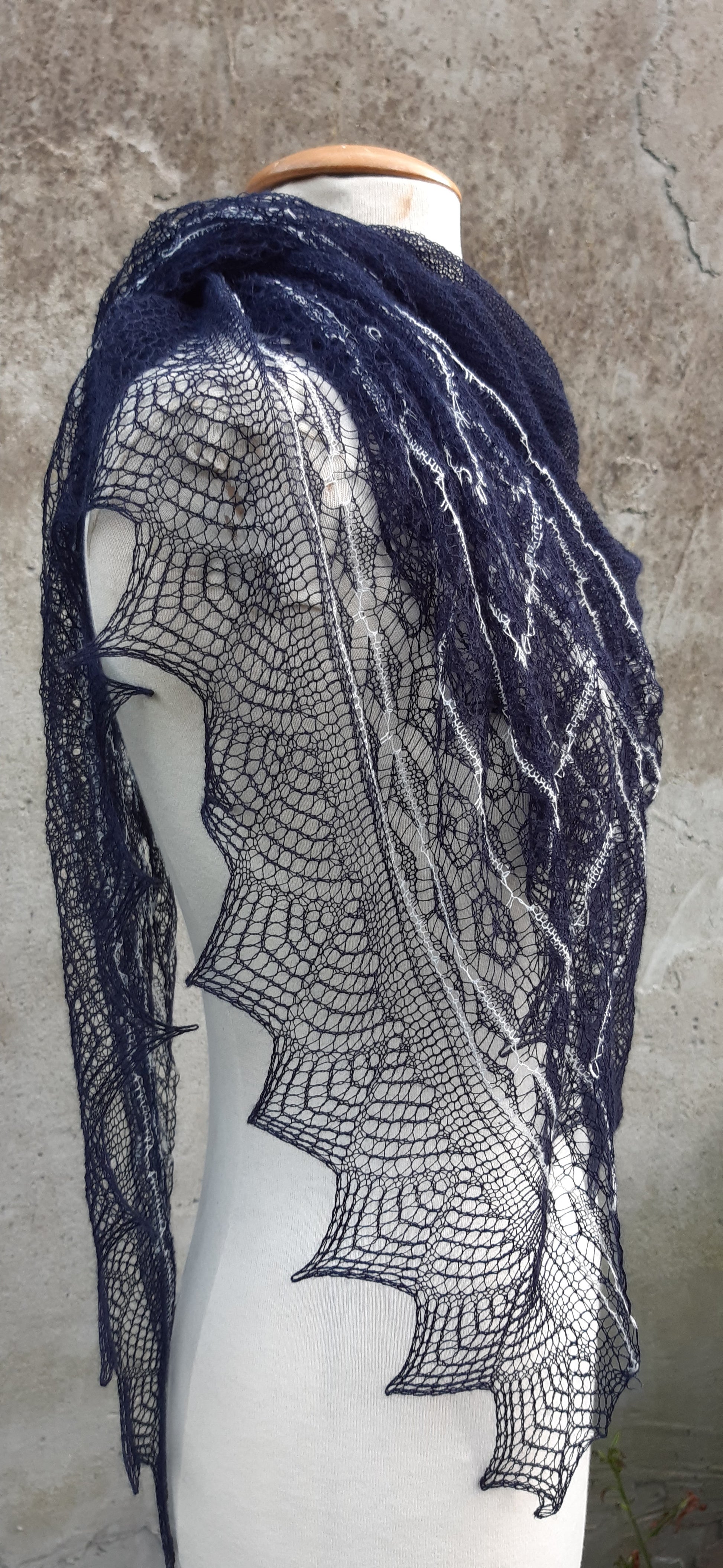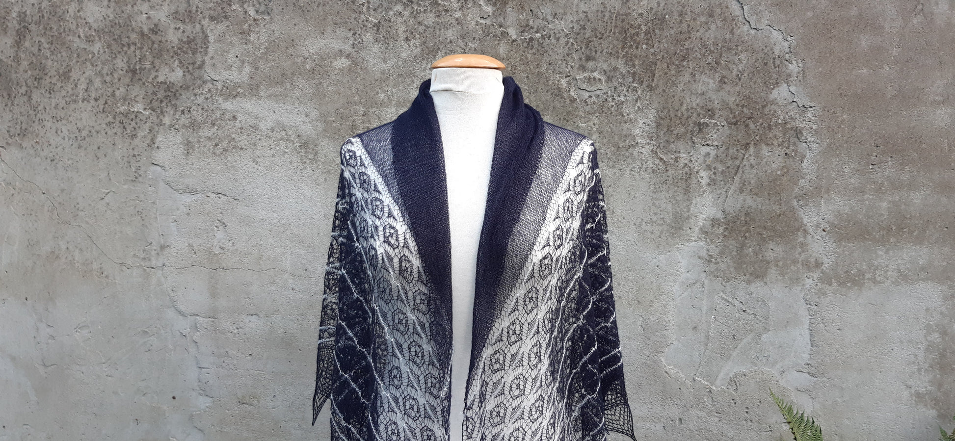 My testknitters had great fun with this design, yet it is an excellent pattern for the beginner in Shetland lace. So many possibilities in colours!