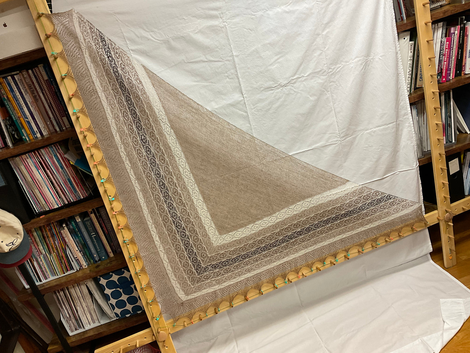 Notions: many stitch markers, suitable detergent, blocking kit and T-pins, towels, blocking location, tapestry needle.