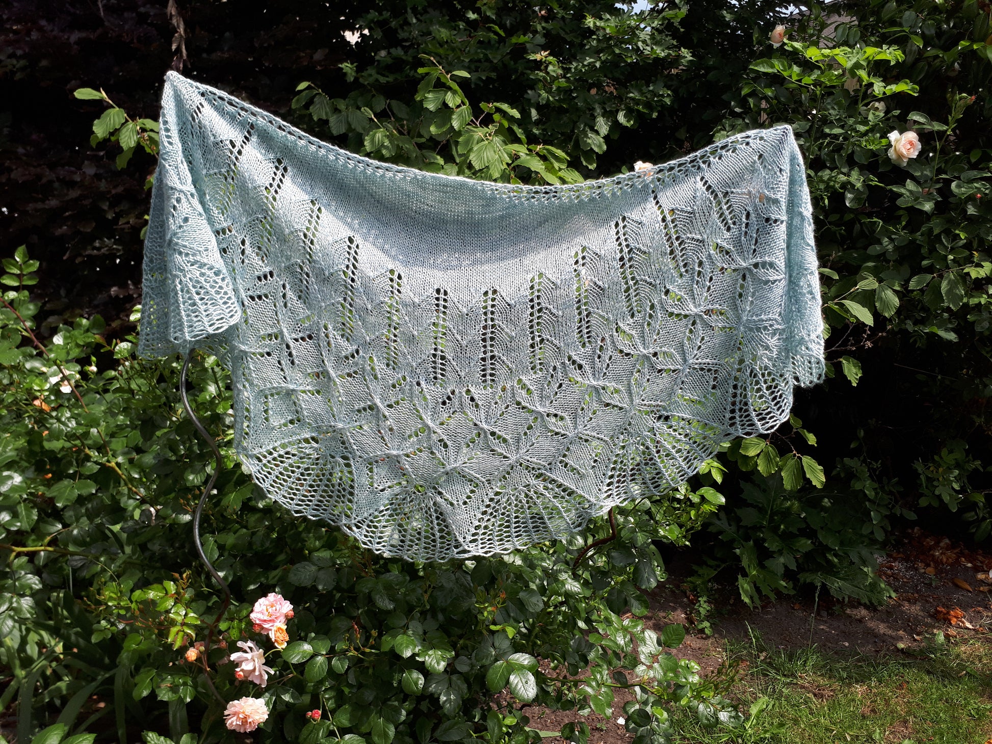 Een shawl in een halve cirkel met een “Molen” patroon!