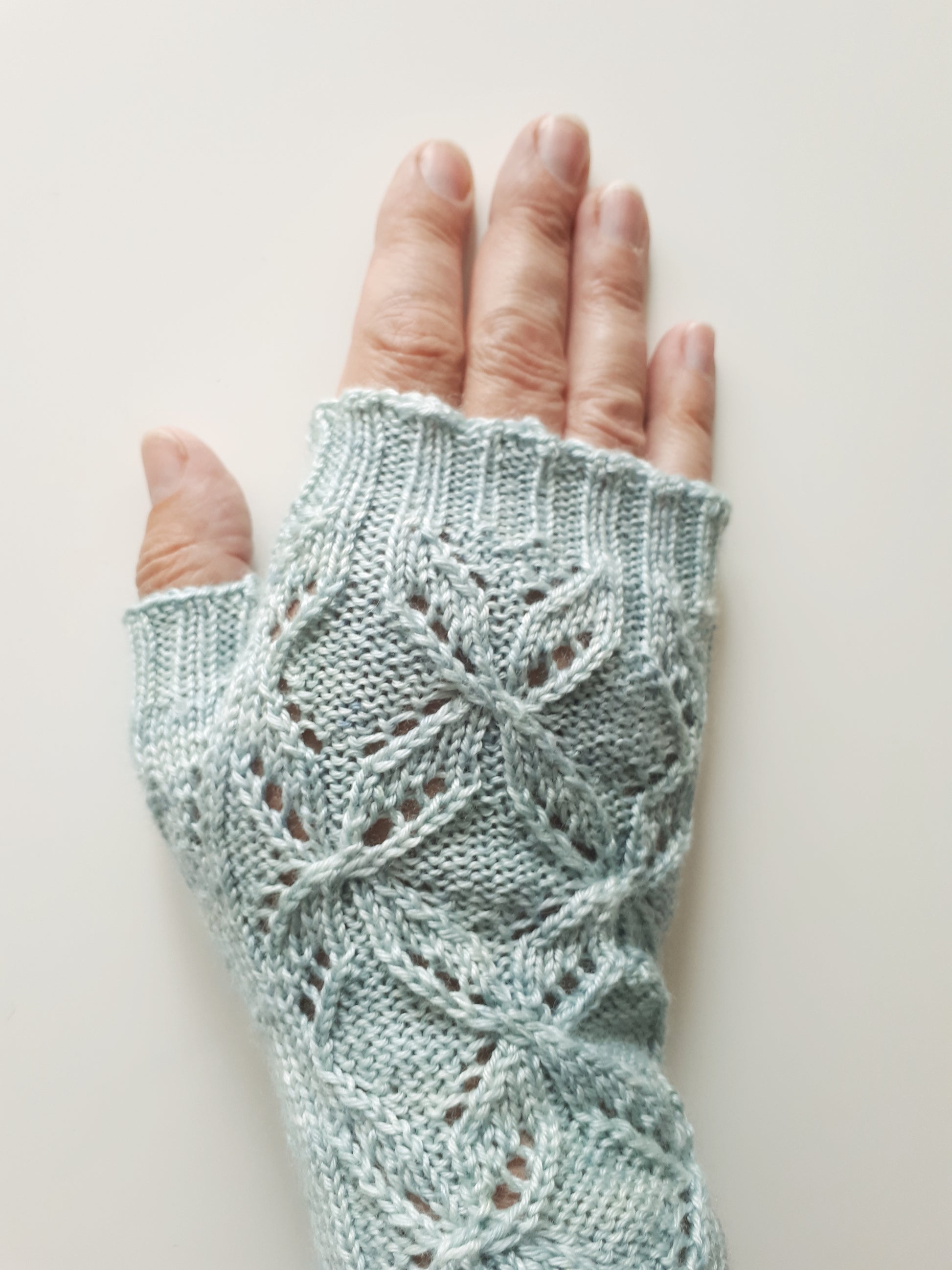 Garen: 165m Koperdraadje “Zijde Zacht” (650m/100gr) Merino (55%) en de Zijde (45%)Ze hebben een goede pasvorm en een echte linker- en rechterhandschoen (duim) en het voelt heerlijk zacht tijdens het dragen.