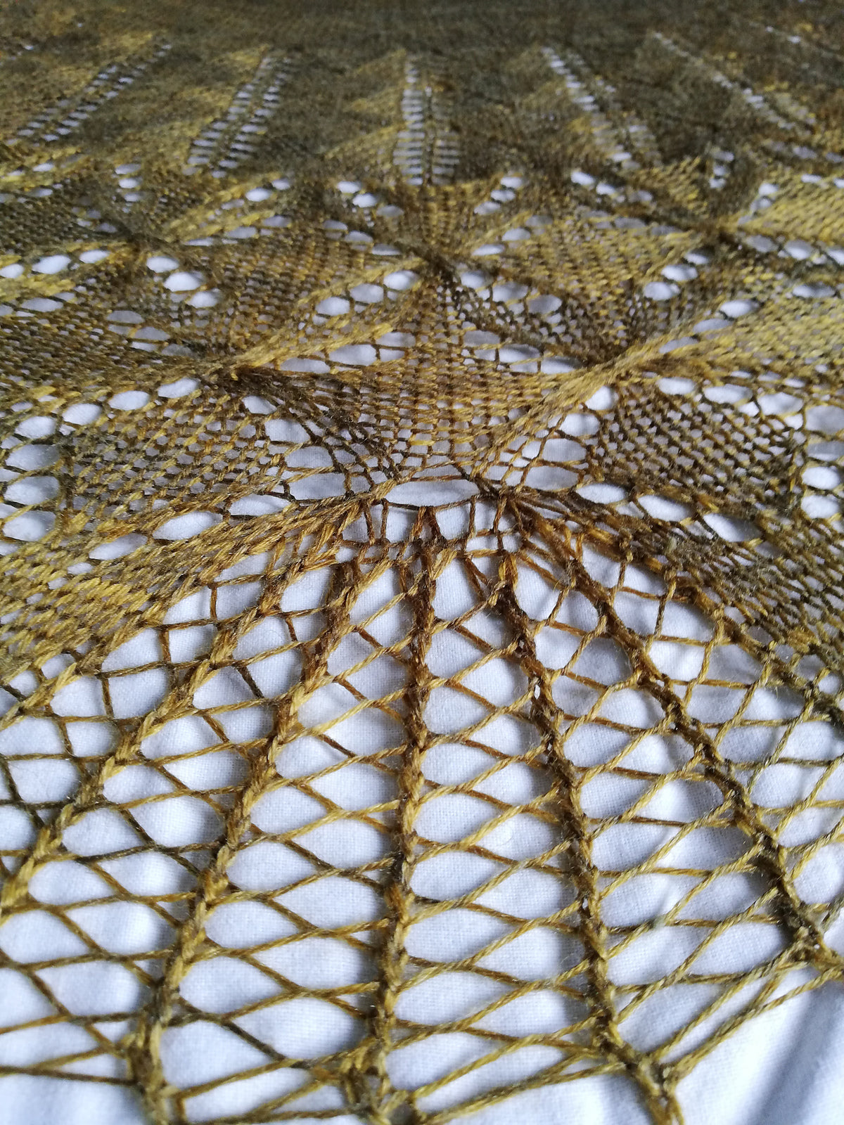 De combinatie in het garen van de BFL (55%) en de Zijde (45%) zorgt er voor dat het een warme shawl is die lekker draagt.