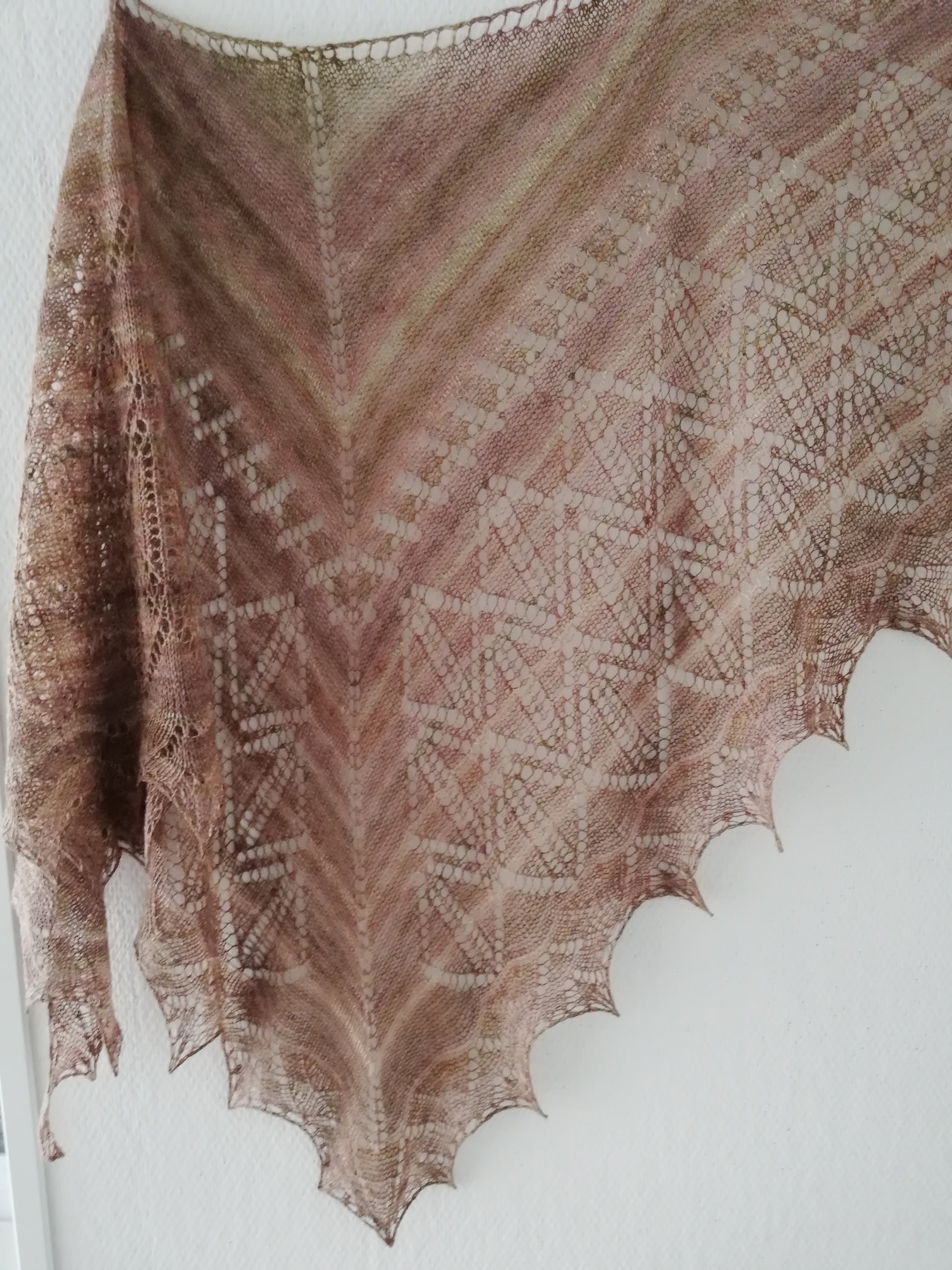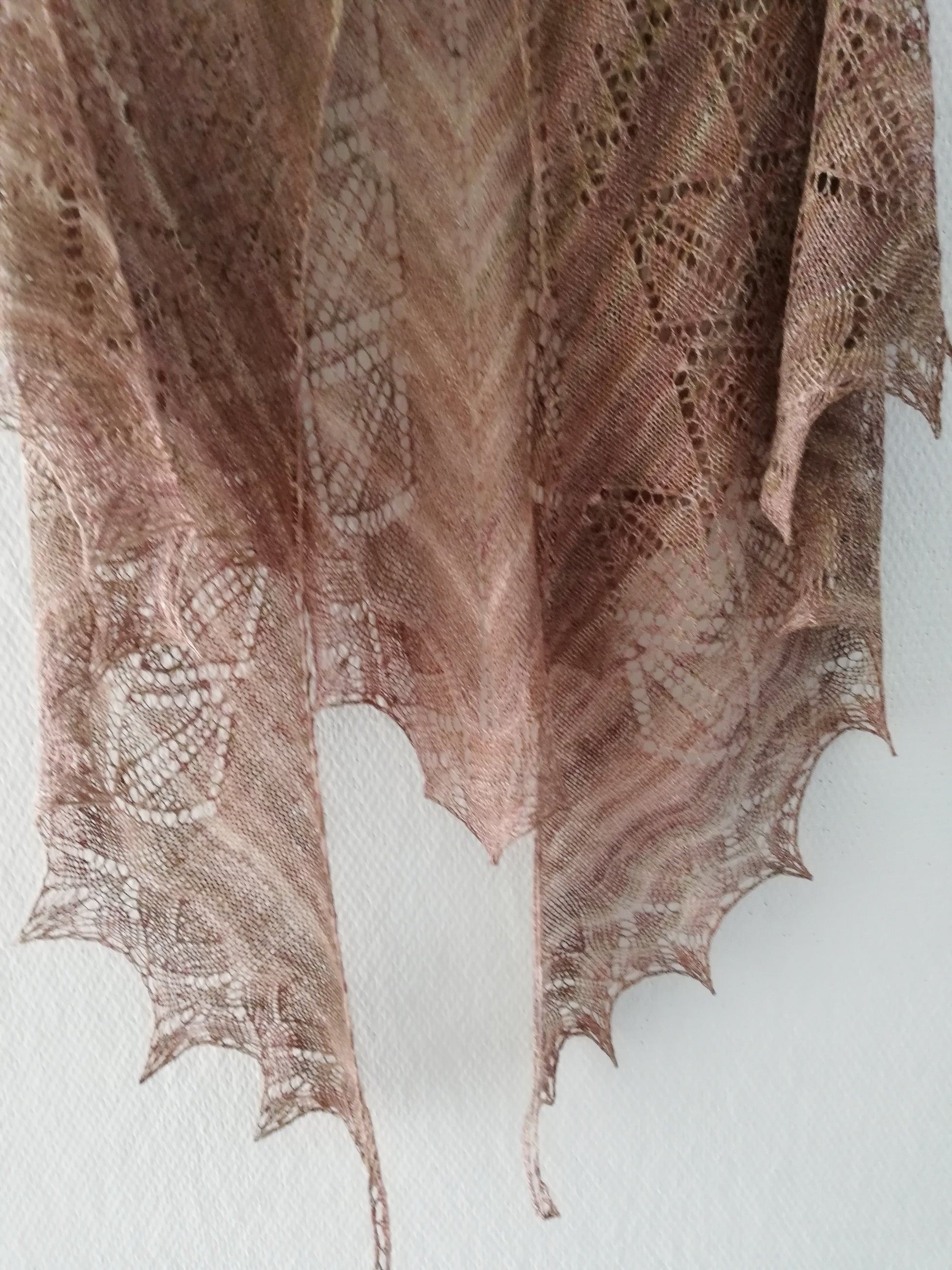 Dit patroon is niet moeilijk te breien. Toch is enige ervaring met het breien van kantpatronen en de constructie van driehoekige sjaals gewenst.