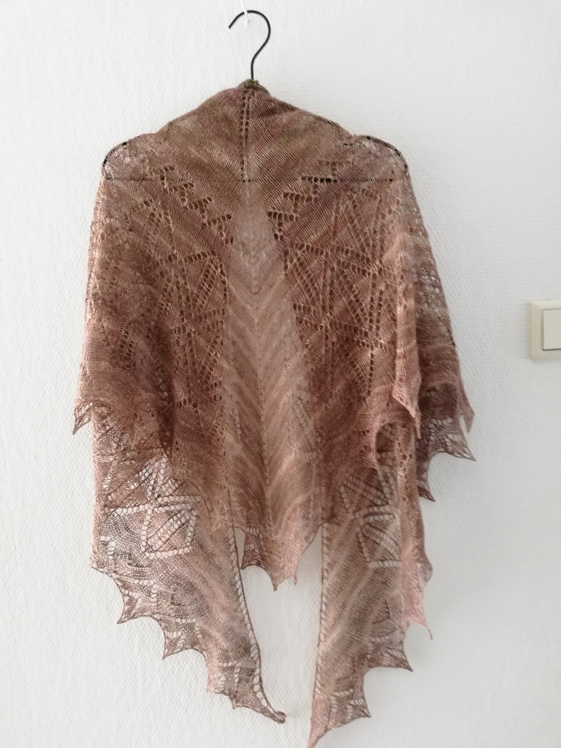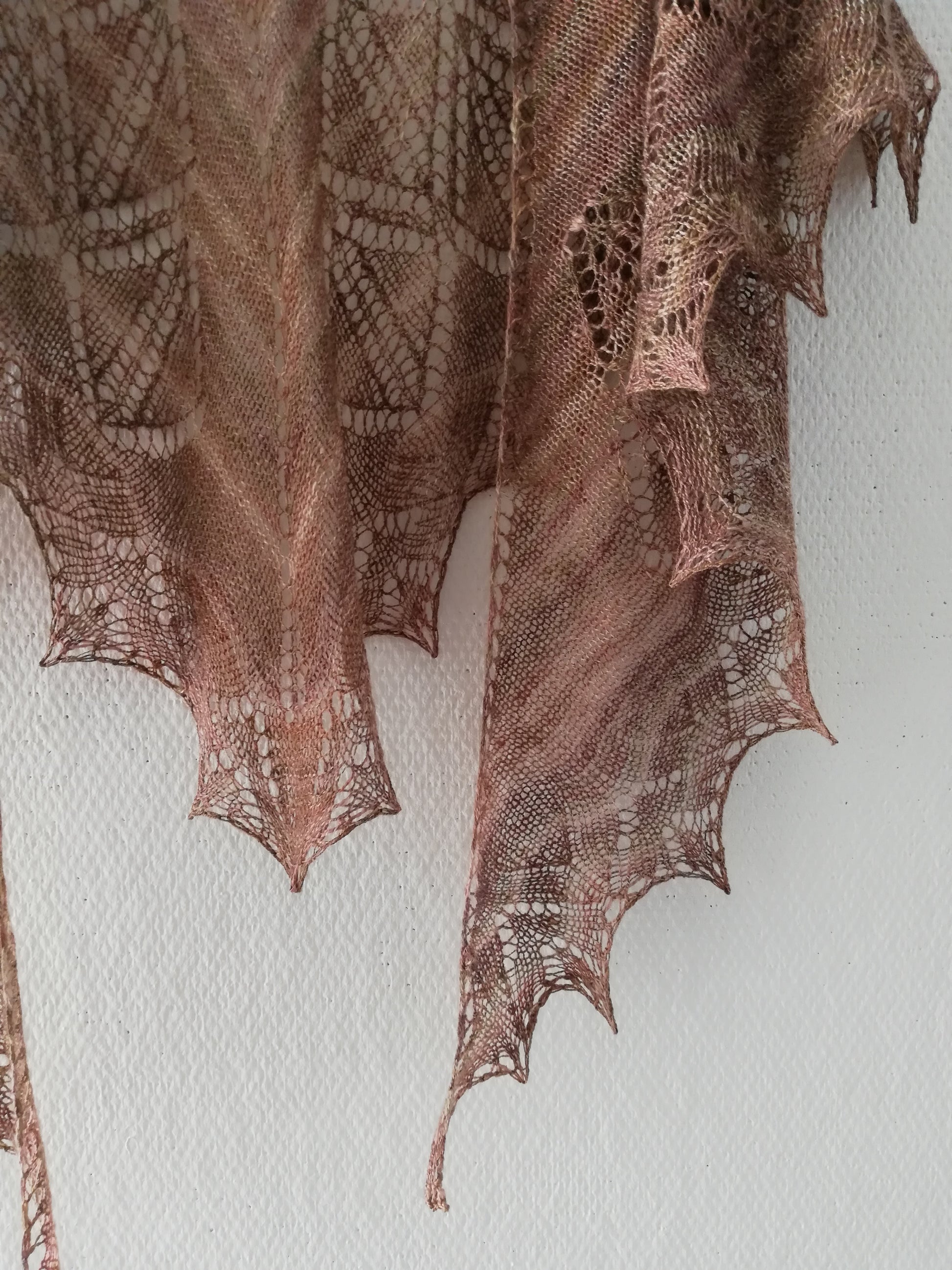 Muness is een prachtige brede shawl met unieke kant patronen. Deze shawl is gebreid met Scrumptious Lace. Dit garen bevat heel veel zijde waardoor de shawl mooi glanst en heel sterk is. Muness is op vele manieren te dragen en kan tijdens speciale gelegenheden ook als stola gedragen worden.