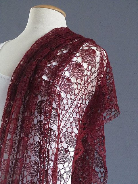 De shawl wordt in 2 delen gebreid, liefst tegelijkertijd zodat er geen verschil is in 'brei-hand'. Het patroon is uitgeschreven in rijen én in charts voor ondersteuning. In het midden naai je beide delen aan elkaar; er is een plaatje als voorbeeld hoe dat moet.