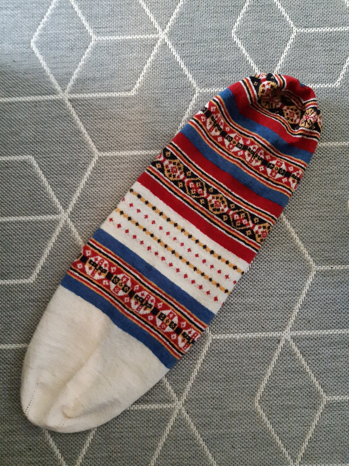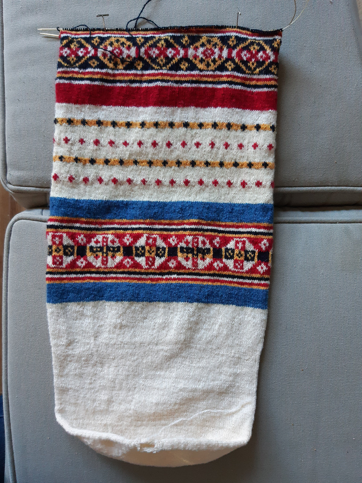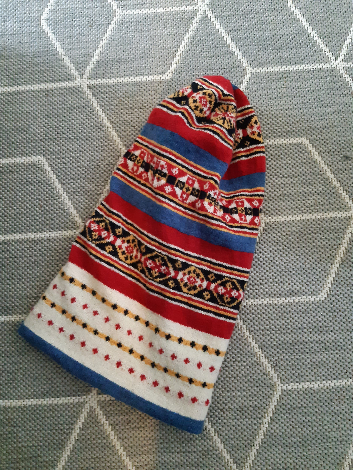 The other a bit larger knit with other colours. In this pattern, certain parts had to be omitted to make it the same size as the original.
