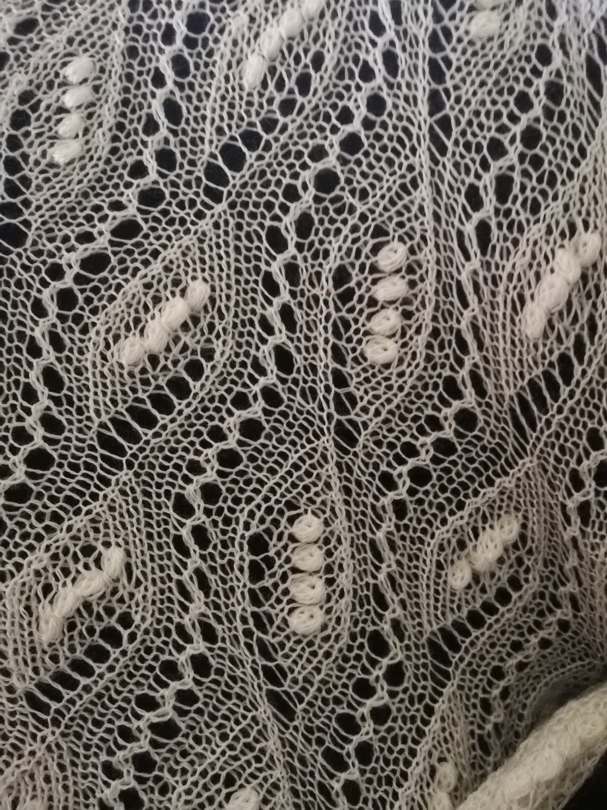 Er zitten 'maar' 624 nupps in deze shawl, maar je ziet ze wel!