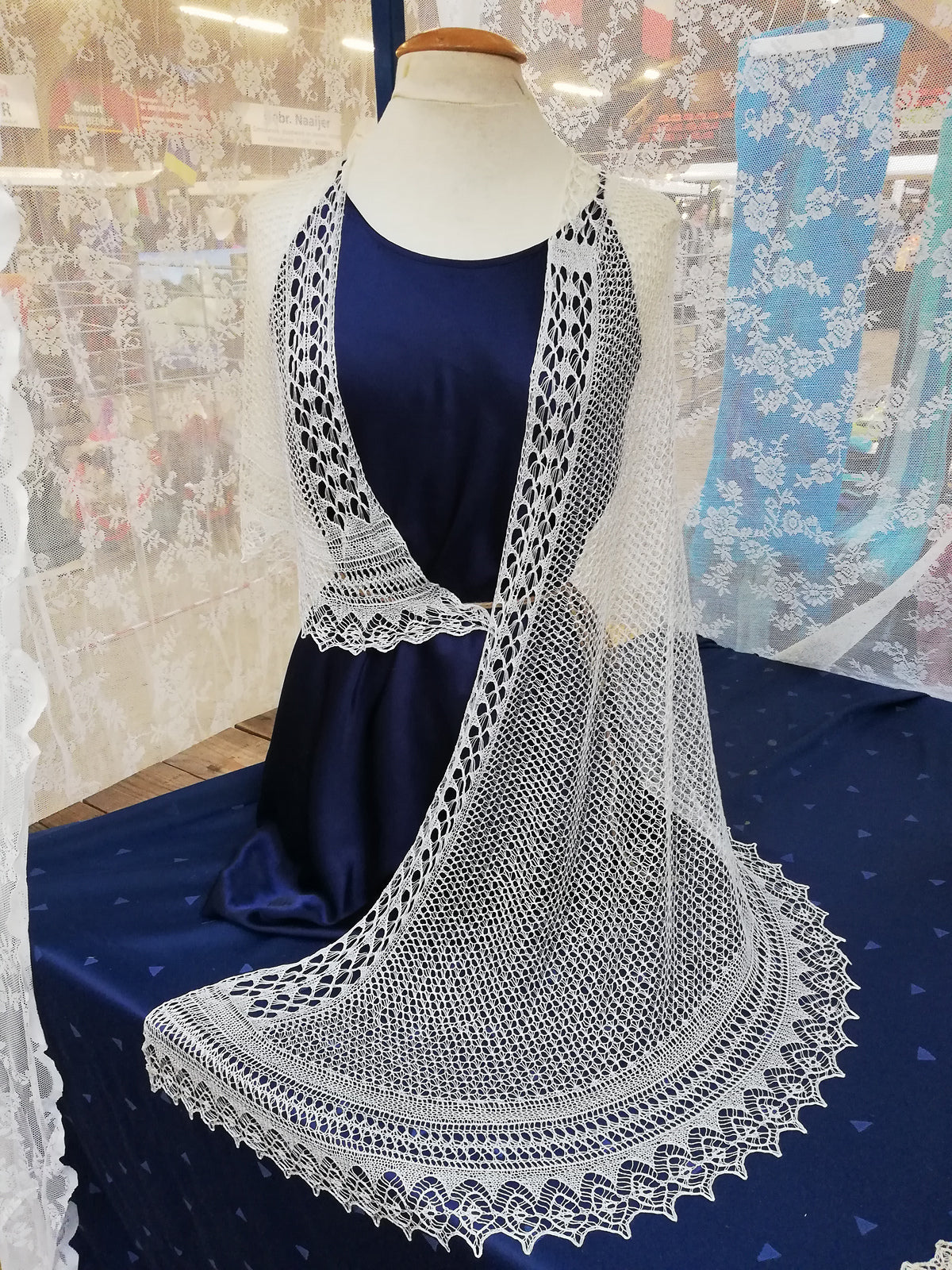 Handknit, delicate and shaped shawl that makes sure people will notice you.