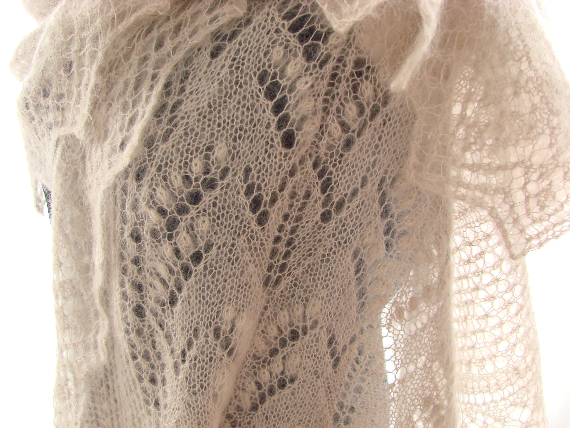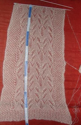 This shawl has a luxurious feel, not only because of the yarn but also because of it's size. Look at the pictures, you can almost feel it already.