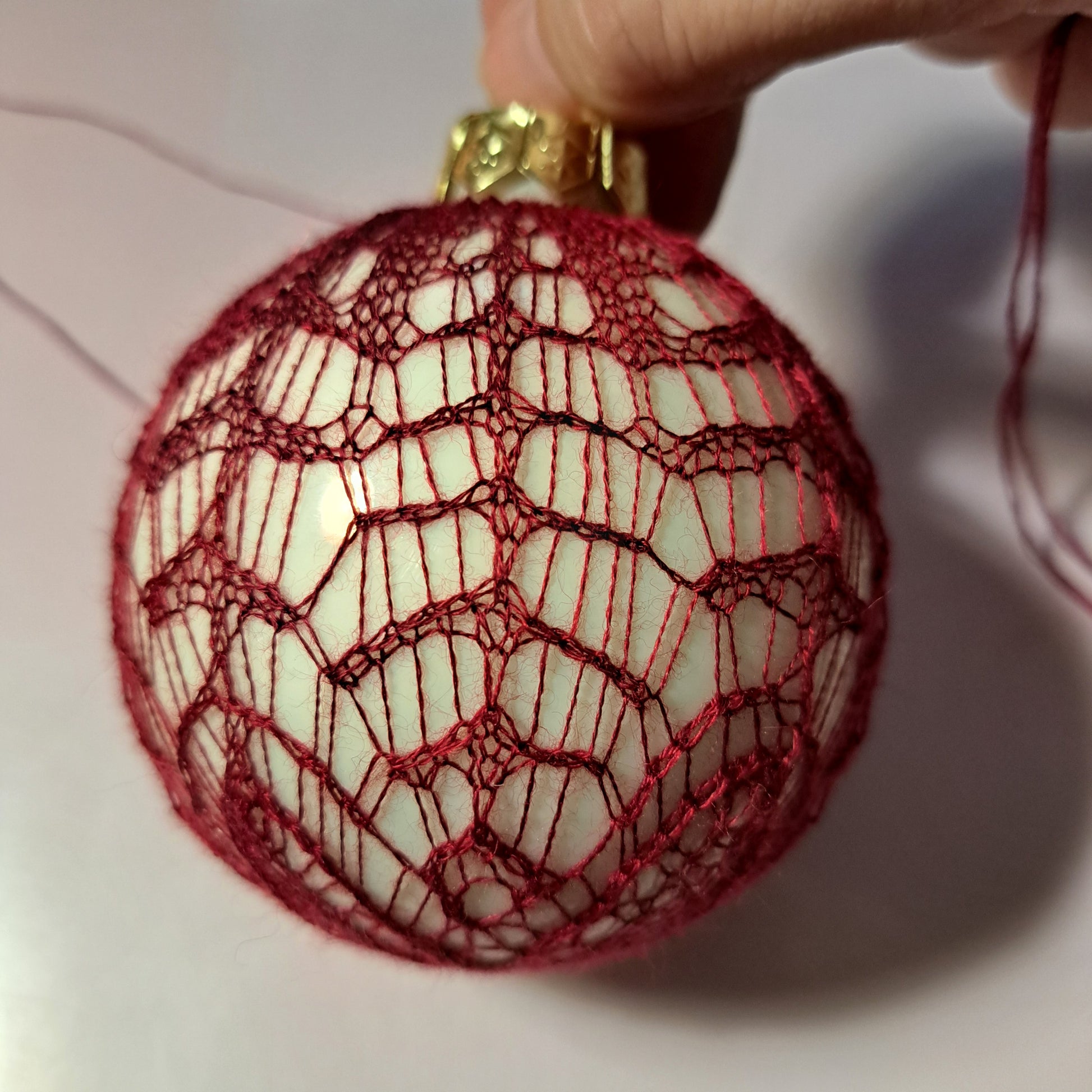 The cover is knit in a bottom-up variation and is totally separate from the bauble.